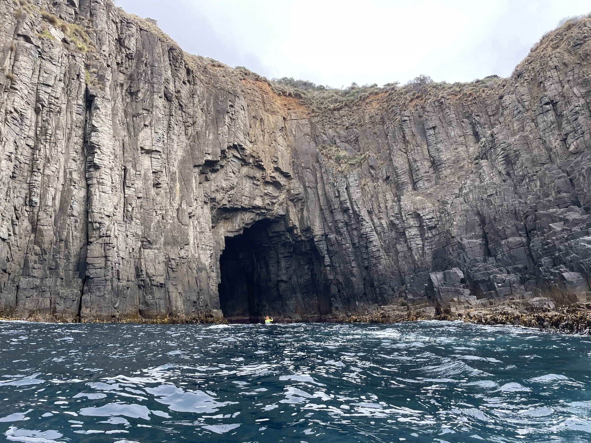 With more time up their sleeve, and their appetite for adventure not yet satisfied, Todd and Marty then took their Audax's to the locale of Gordon on the D'entrecasteaux Channel and headed off around Bruny Island. To bookend Southwest Tassie with a Bruny Island circumnavigation is a rare feat indeed as either trip is a substantial achievement in its own right. The circumnavigation required four very engaging days of paddling once again facing the Southern Ocean in its many moods as they worked their way along the spectacular sea cliffs.